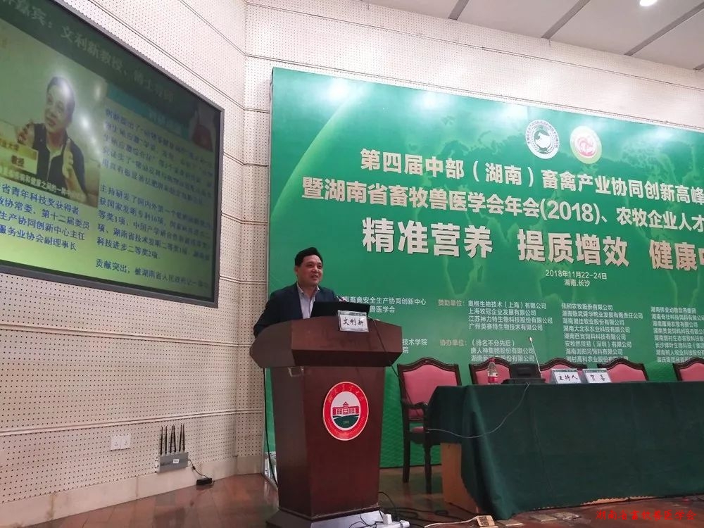 大会以“精准营养、提质增效、健康中国”为主题,专家学者们关于畜禽产业难点和热点及企业发展中的瓶颈问题开展学术交流和互动。主题报告会上,湖南畜禽安全生产协同创新中心主任、湖南农业大学博士生导师文利新教授做《猪与健康中国梦》主题报告,他谈到猪油对人们的健康生活至关重要,同时结合现在流行病学的调查,分享关于猪肉与人类健康方面上的原创性研究 。