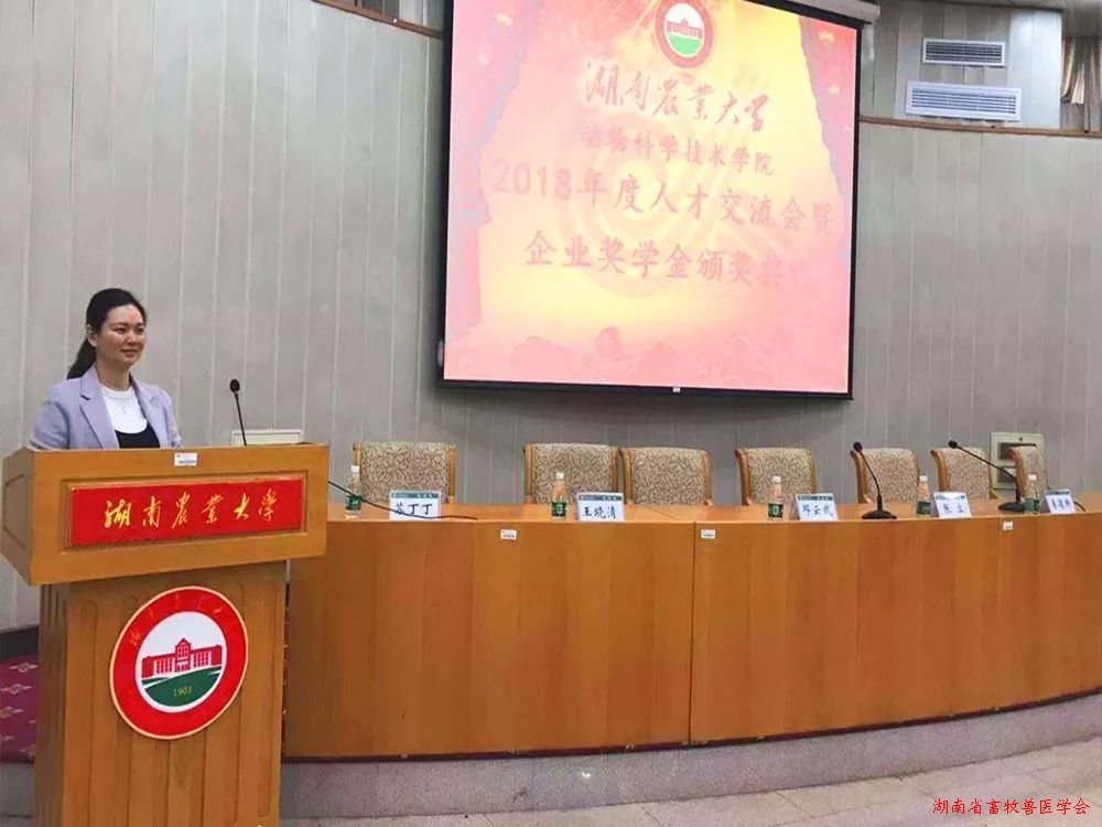 大会期间设有展位20余个,展示优质畜禽品种、饲料、兽药、生物制品、猪场设备等产品及人才招聘信息。湖南烟村公司行政人事部经理蔡琳娜女士代表我司进行企业宣讲,向大家展示了烟村公司多年在“健康中国”事业发展道路上的决心以及核心优势。同时,湖南烟村公司为广大毕业生提供了施展才华和实现抱负的舞台,诚邀您与我们共同努力,推动国家生猪提质工程事业不断发展壮大。