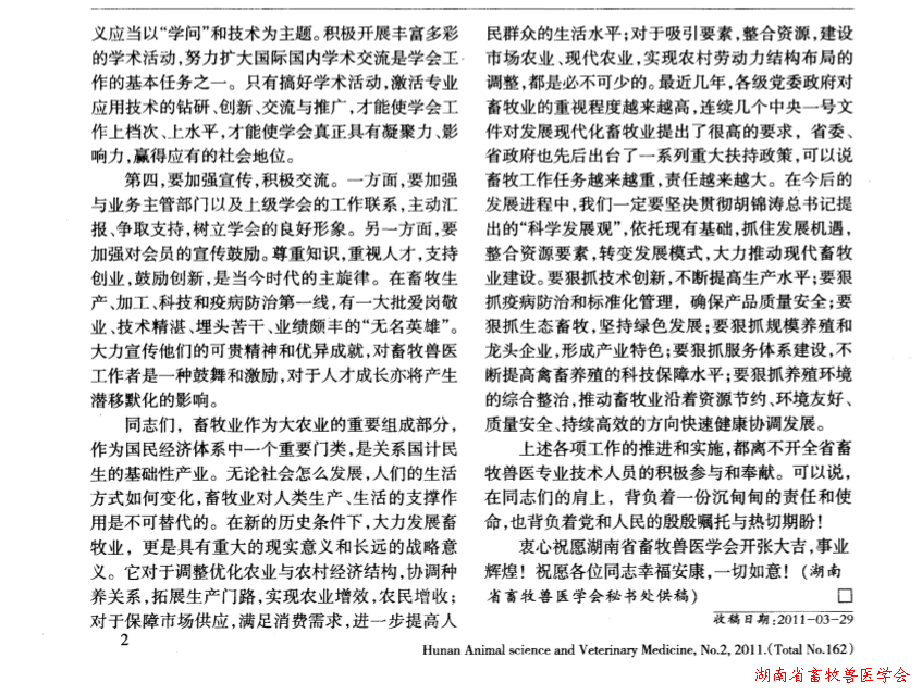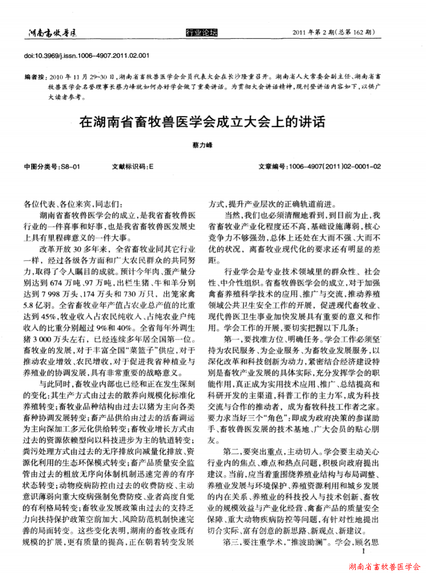 在湖南省畜牧兽医学会成立大会上的讲话